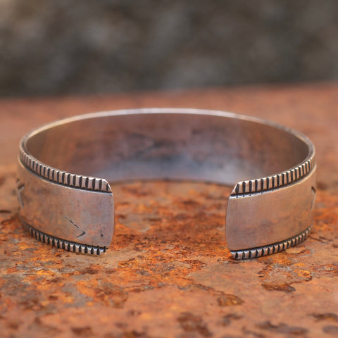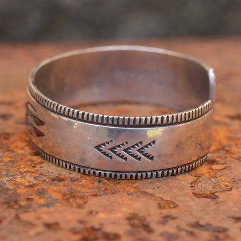 Vintage Sterling Crushed Turquoise and Coral Yei Cuff Bracelet
