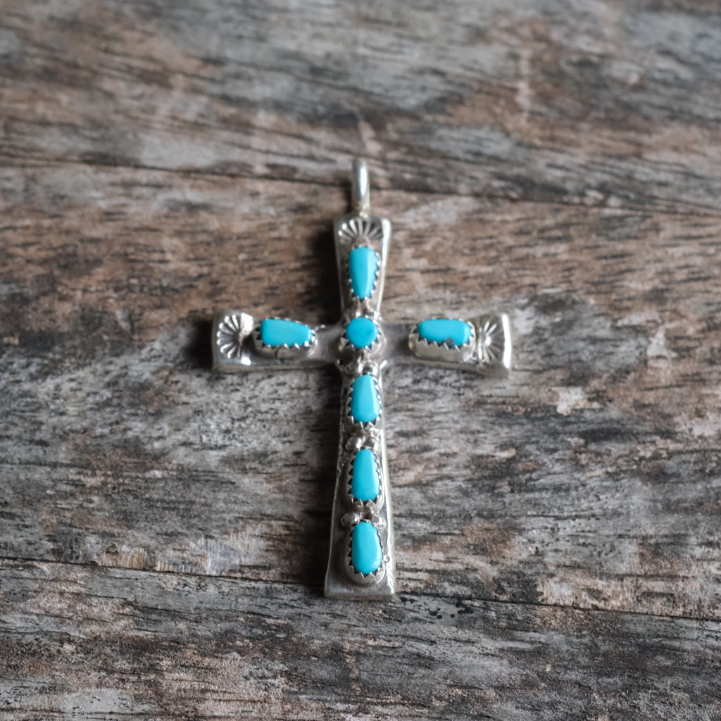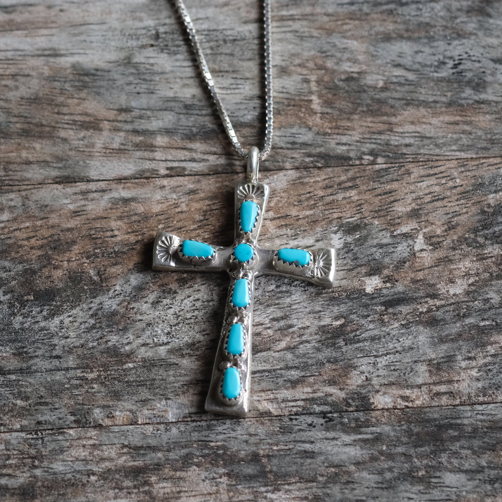 Vintage Sterling 7-Stone Turquoise Cross Necklace