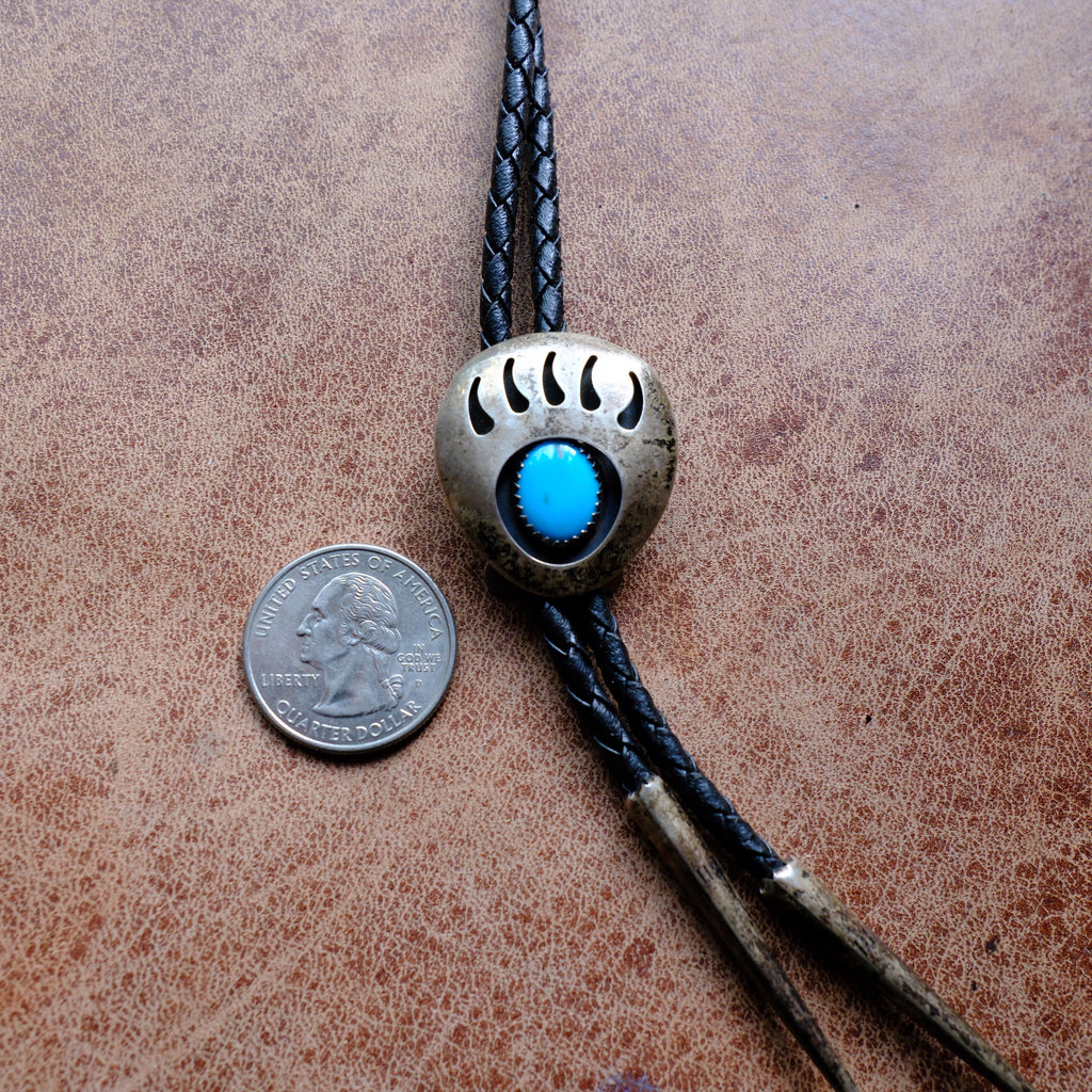 Vintage Sterling Turquoise Bear Paw Bolo Tie