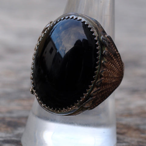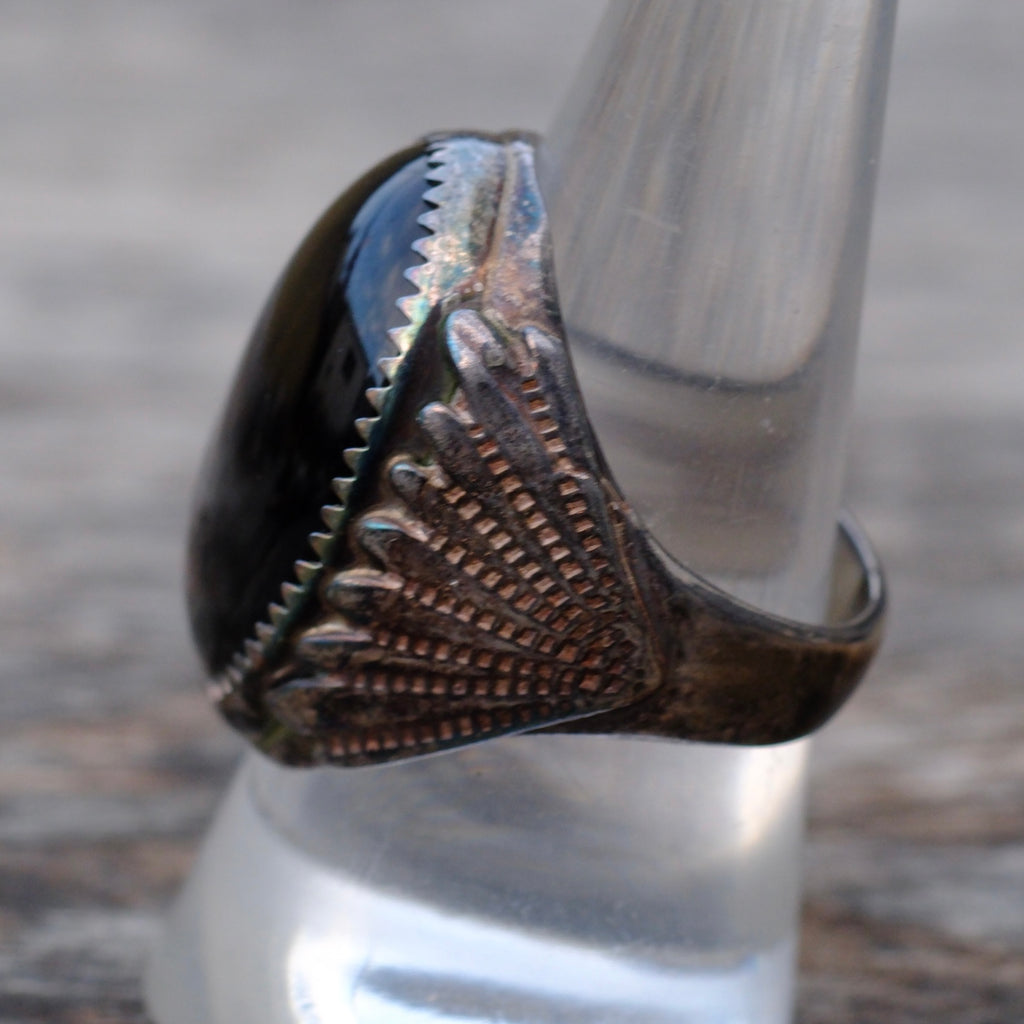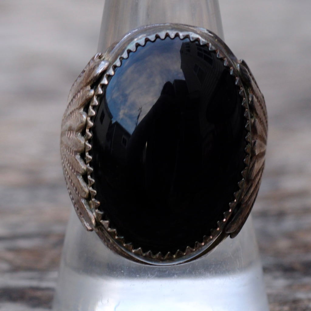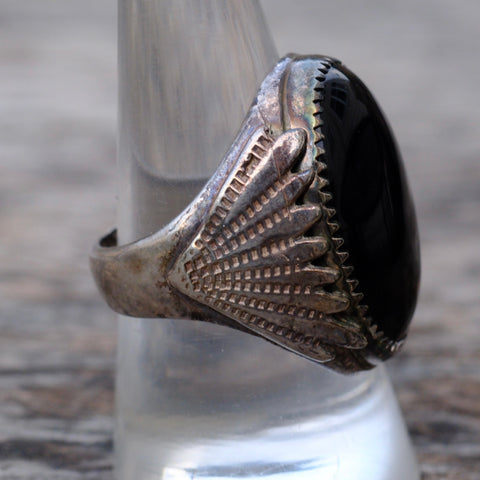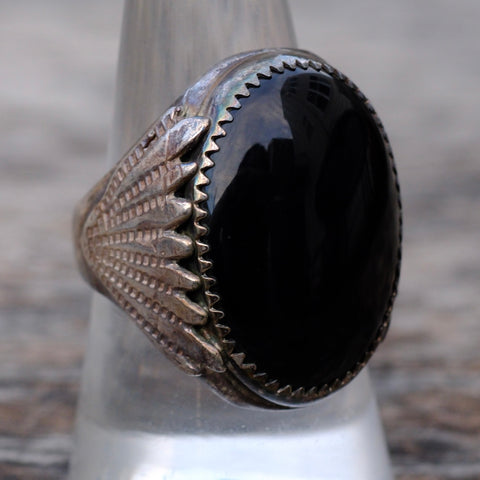 Vintage Sterling Onyx Ribbed Band Ring 9.25