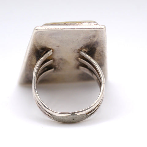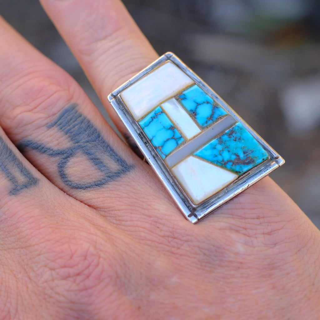HUGE Vintage Sterling Turquoise and Mother Of Pearl Inlay Ring 5.75