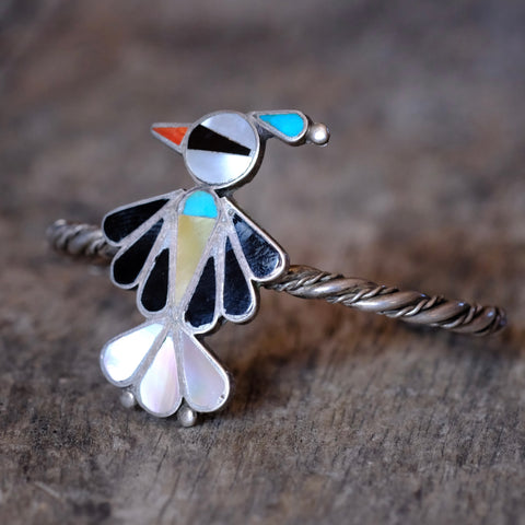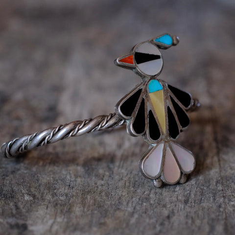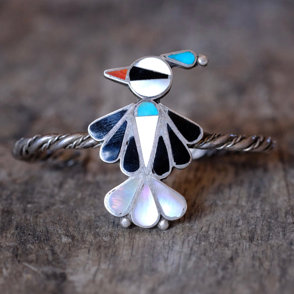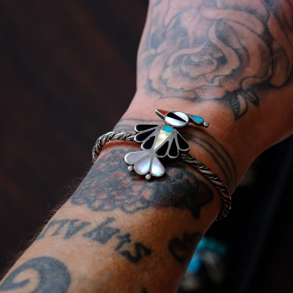 Vintage Sterling Inlaid Thunderbird Cuff Bracelet