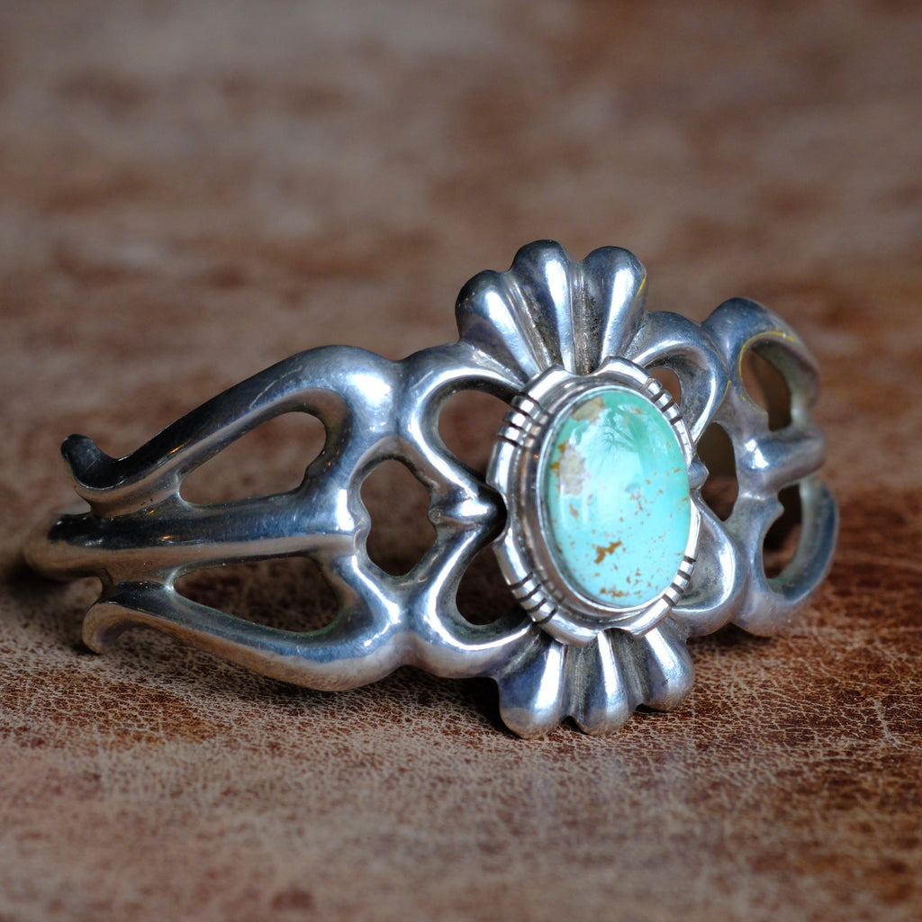 Vintage Sterling King Manassa Turquoise Sandcast Cuff
