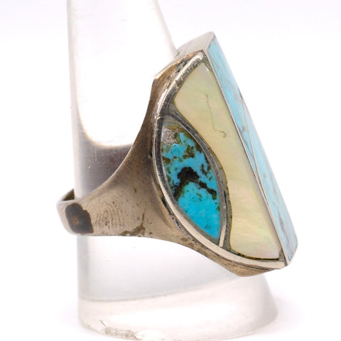 Vintage Sterling Turquoise and Mother Of Pearl Inlay Ring
