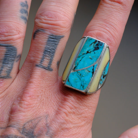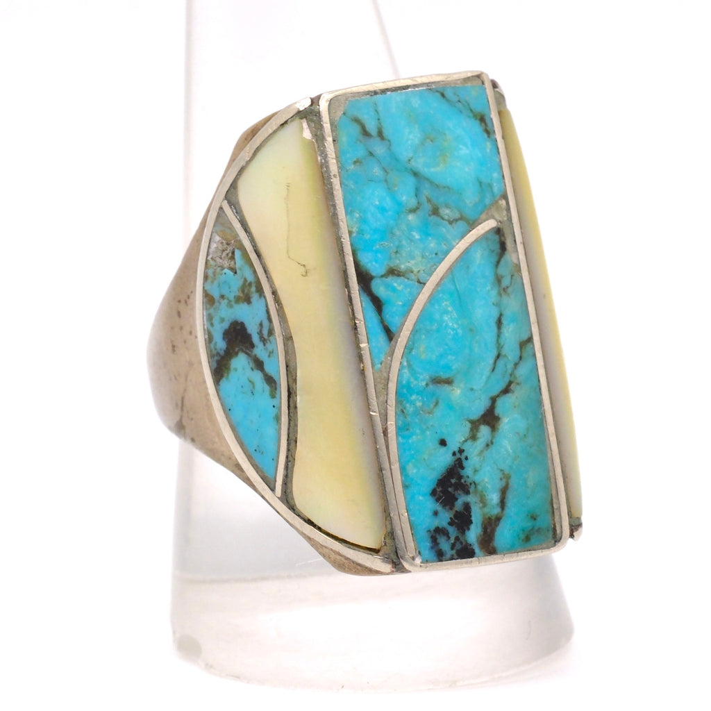 Vintage Sterling Turquoise and Mother Of Pearl Inlay Ring 10.75