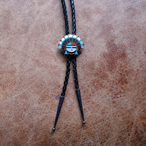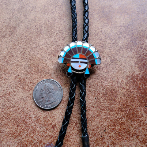 Vintage Sterling Multistone Inlay Zuni Headdress Bolo Tie