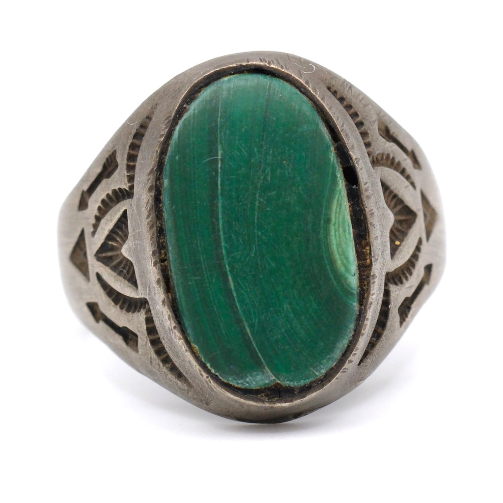 Vintage Sterling Stamped V Malachite Trading Post Ring