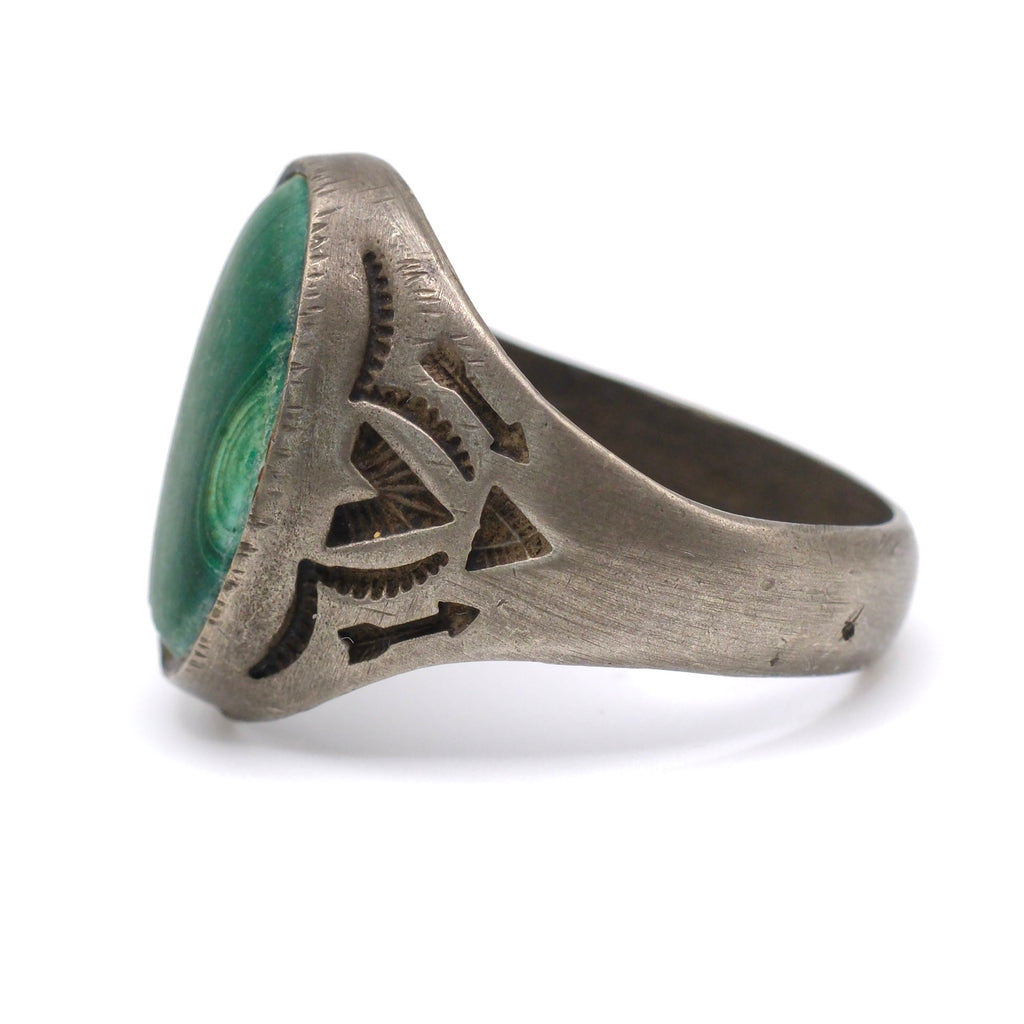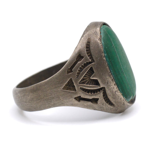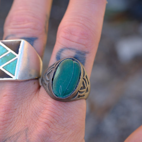 Vintage Sterling Stamped V Malachite Trading Post Ring 13