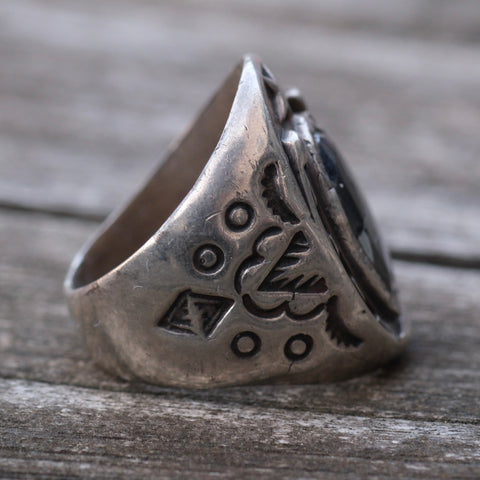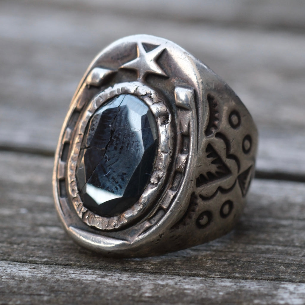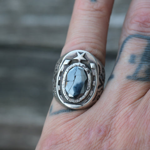 Vintage Sterling Hematite Lucky Horseshoe Ring