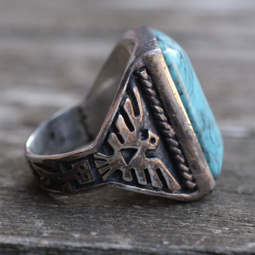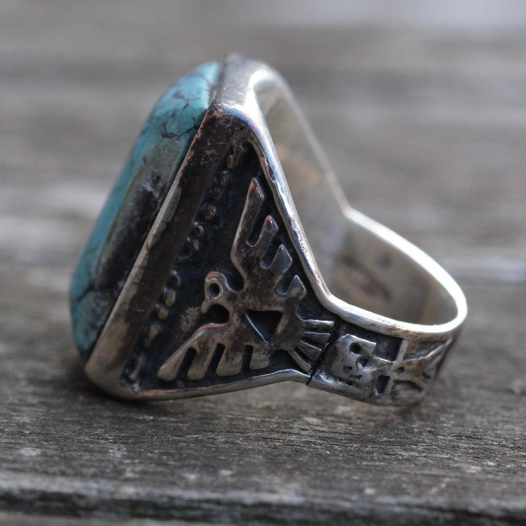 Vintage Sterling Turquoise Thunderbird Ring 7.5