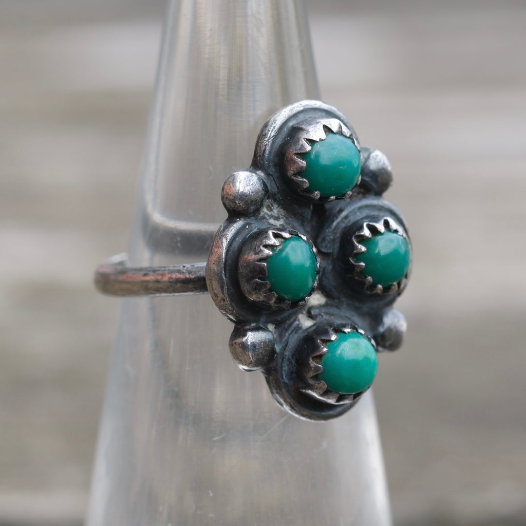 Vintage Sterling Turquoise Cluster Ring 3.5