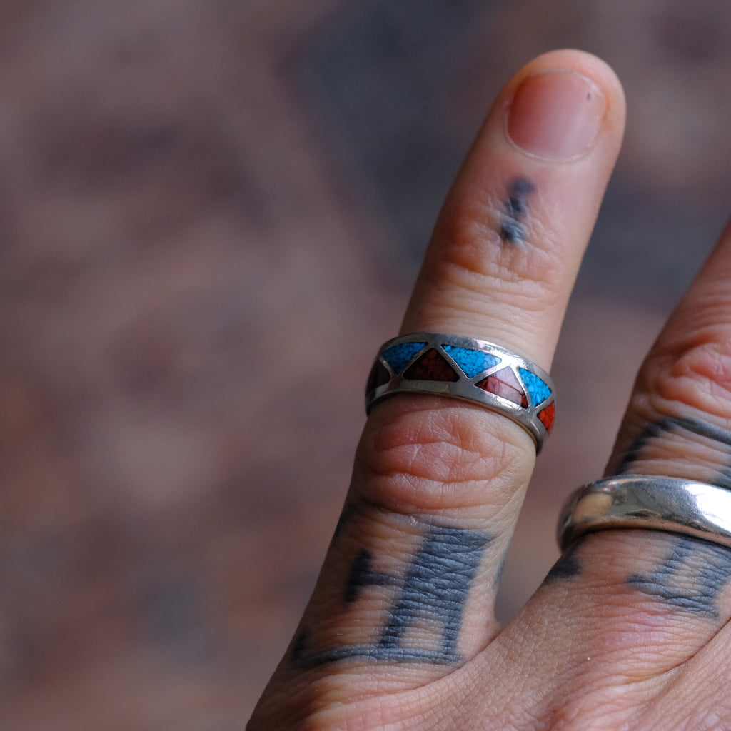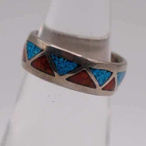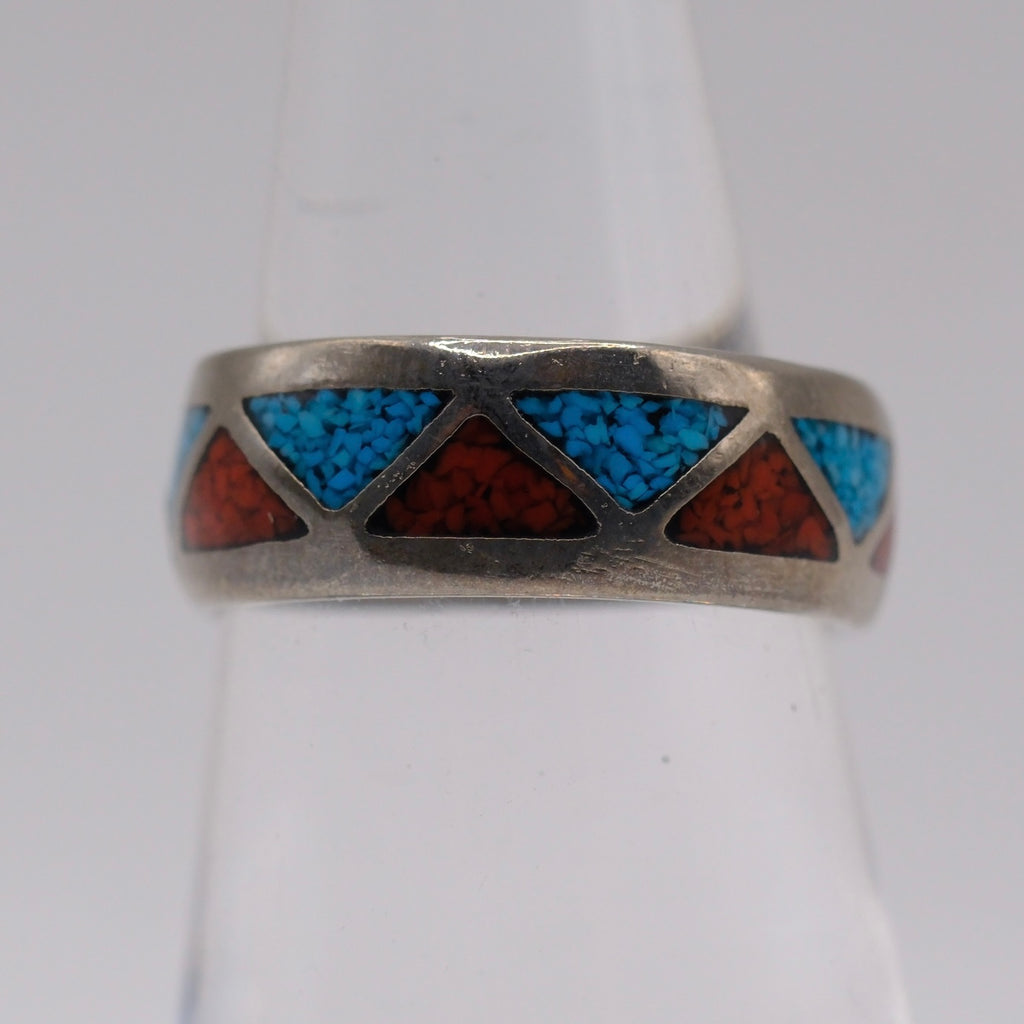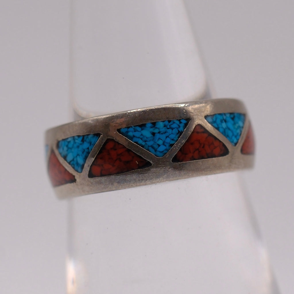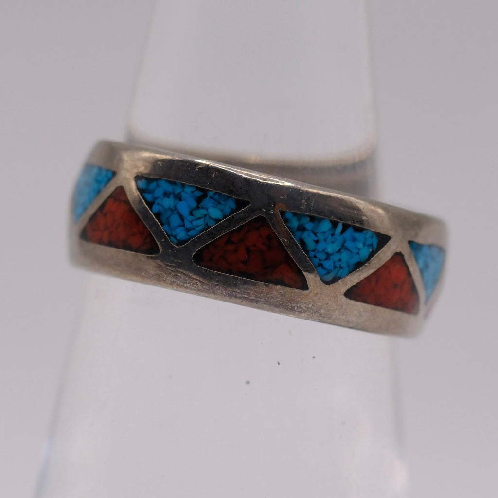 Vintage Sterling Crushed Turquoise and Coral Band Ring