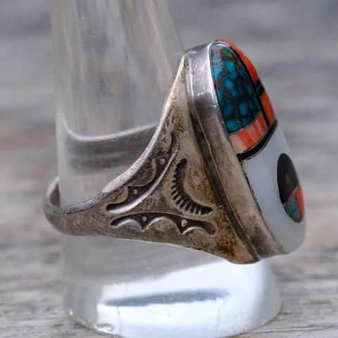 Vintage Sterling Zuni Sunface Inlay Ring 11