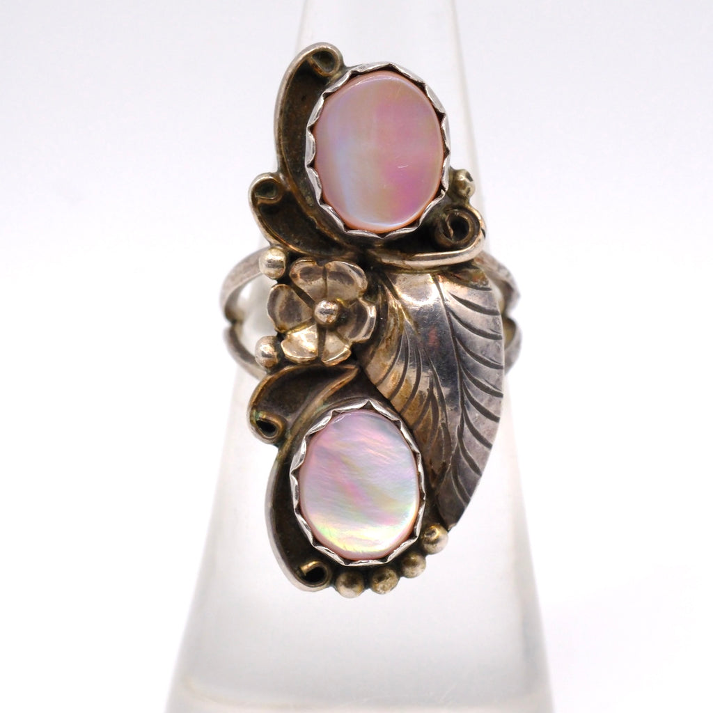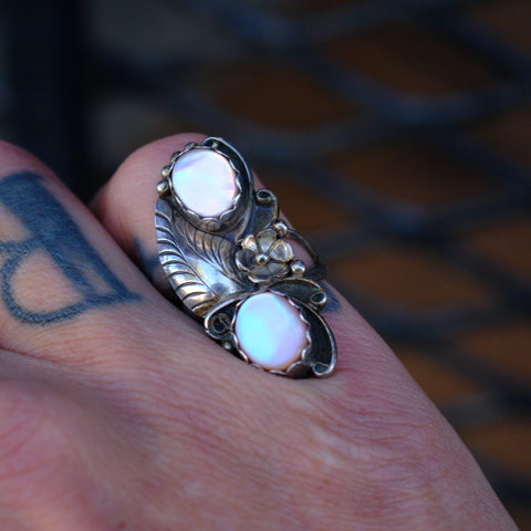 Vintage Sterling 2-Stone mother Of Pearl Feather Ring