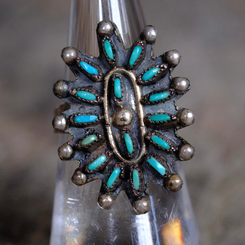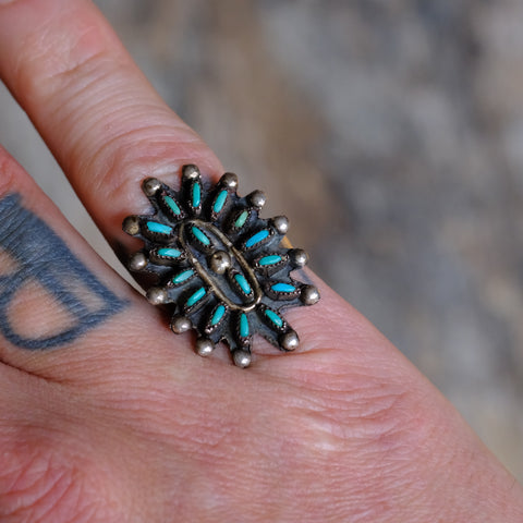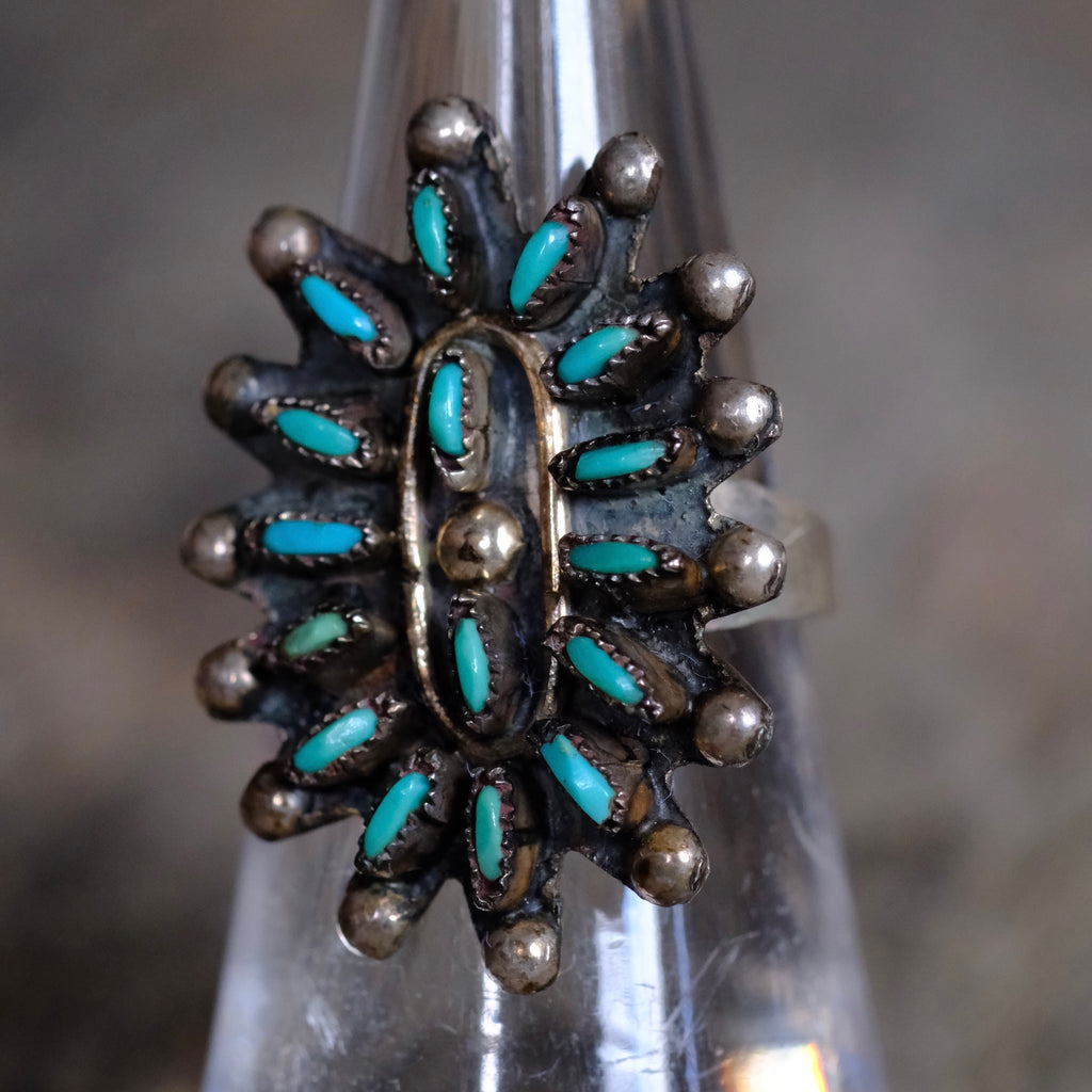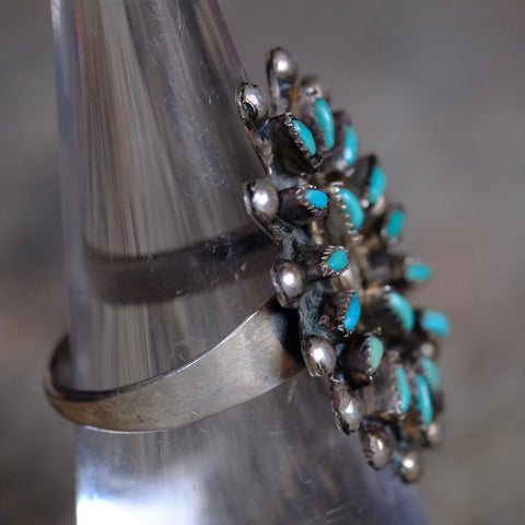 Vintage Sterling Turquoise Cluster Ring 6.5