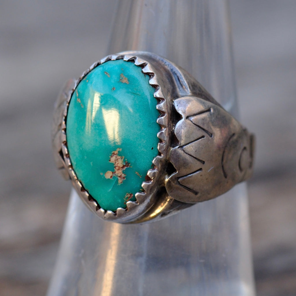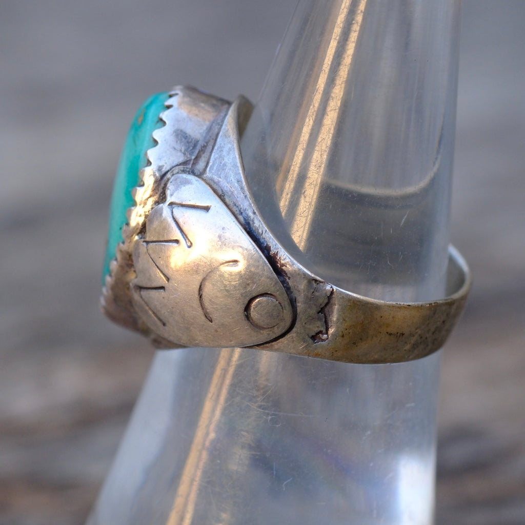 Vintage Sterling Turquoise Stamped Band Ring 6.5