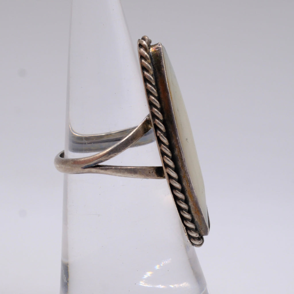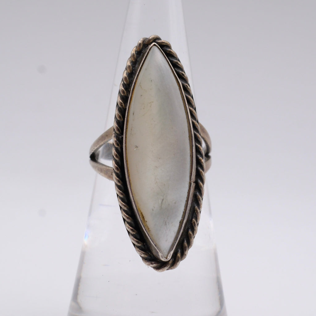 Vintage Sterling Mother Of Pearl Roper Ring 5.25