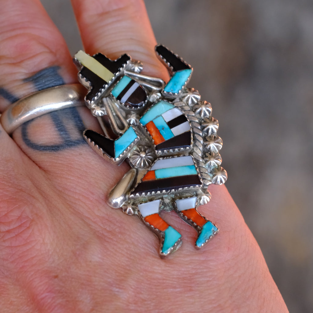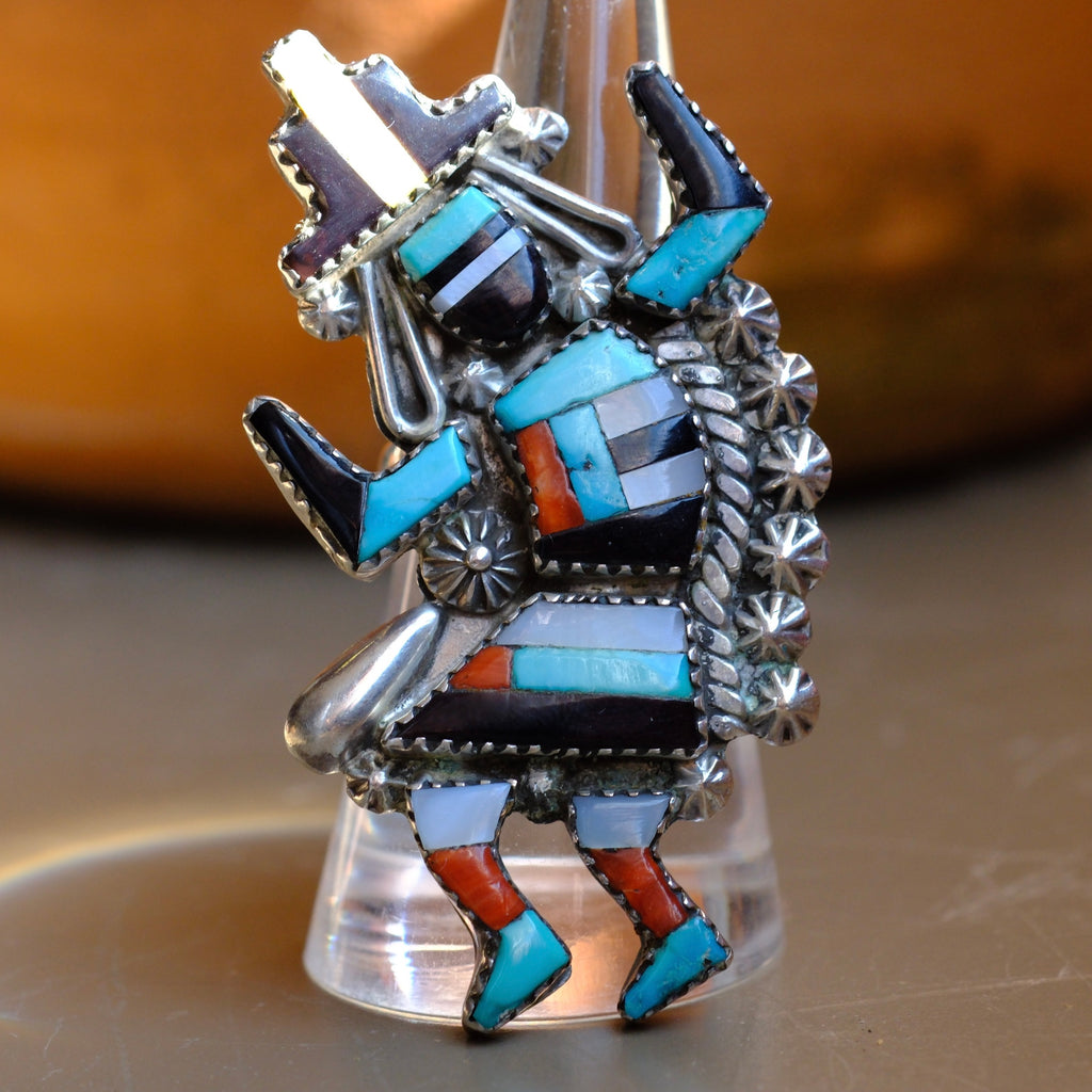 RARE Vintage Sterling Multistone Inlay Rainbowman