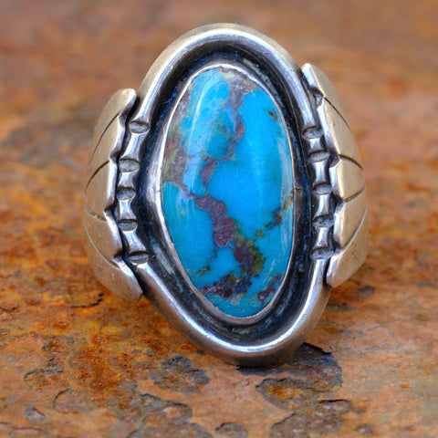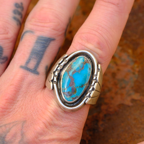 Vintage Sterling Turquoise Ribbed Band Ring 11