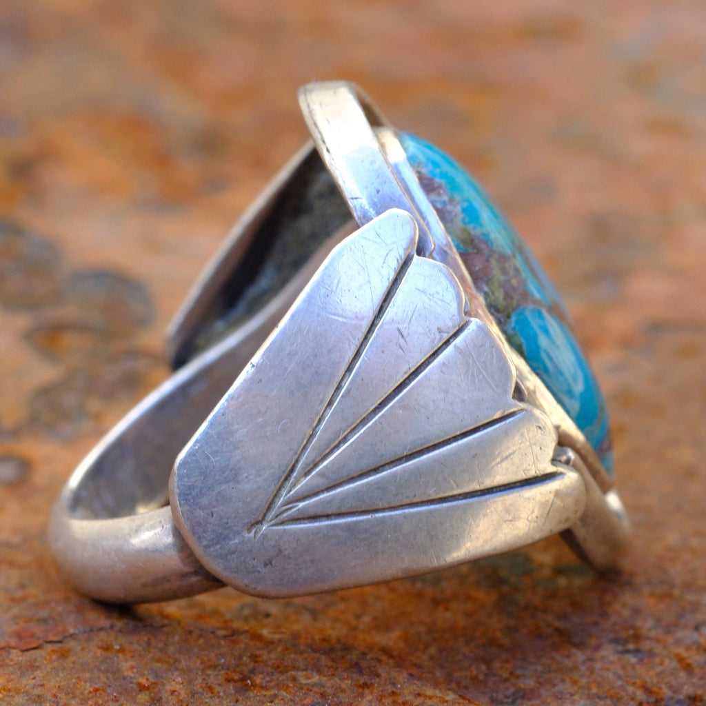 Vintage Sterling Turquoise Ribbed Band Ring