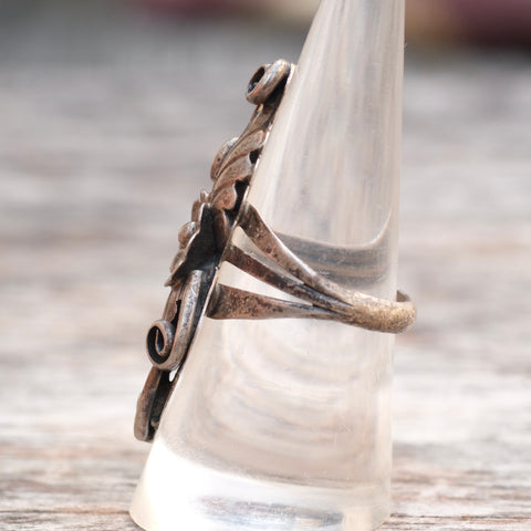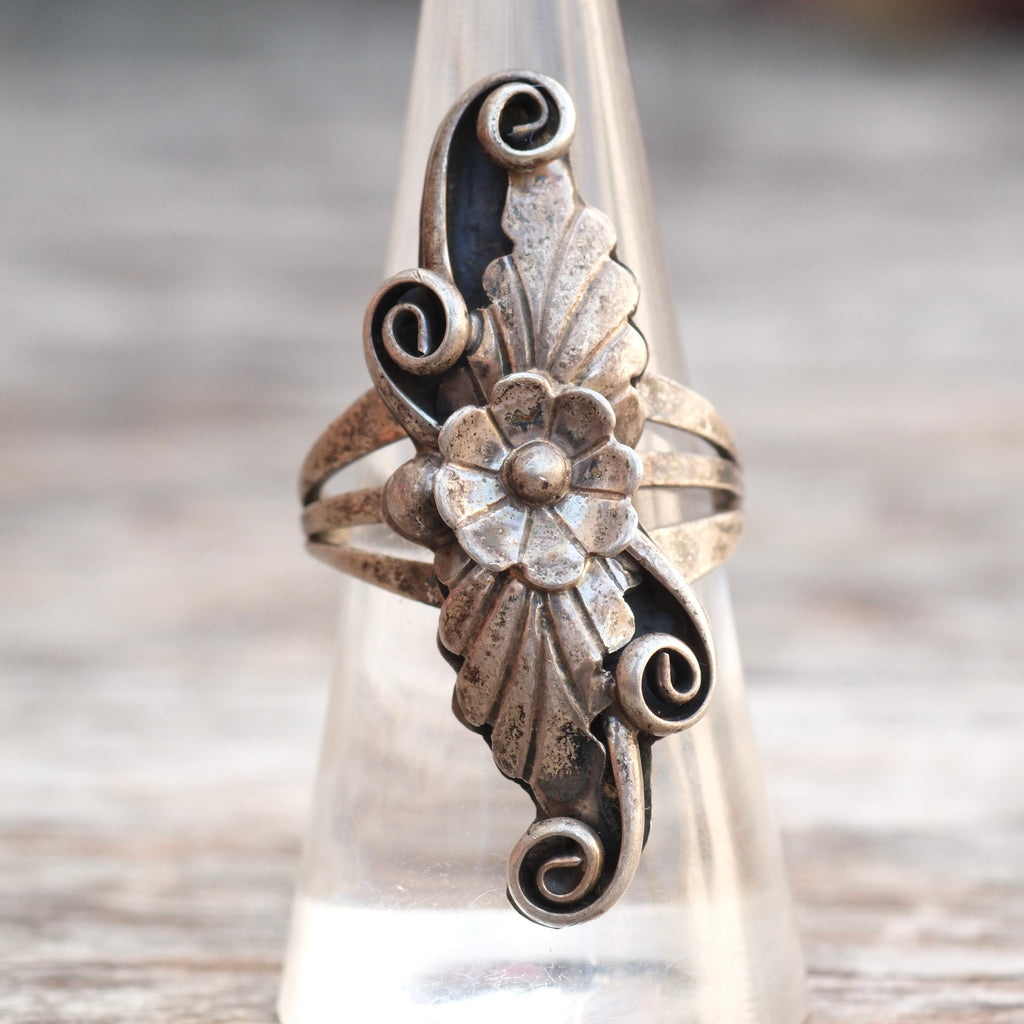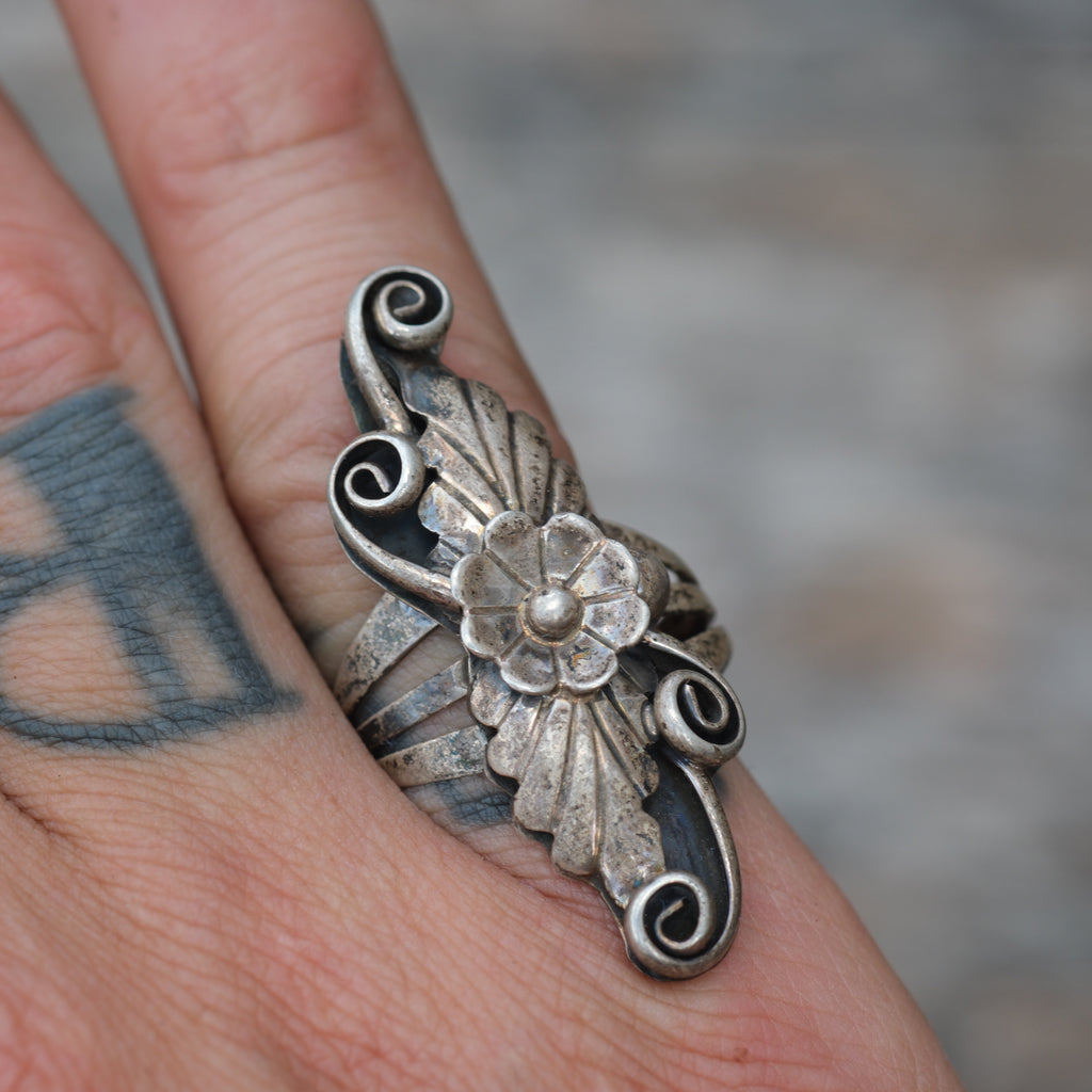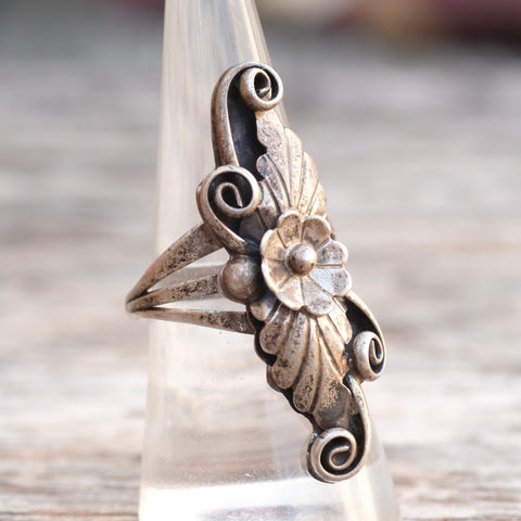 Vintage Sterling Silver Feather Blossom Ring 7.75