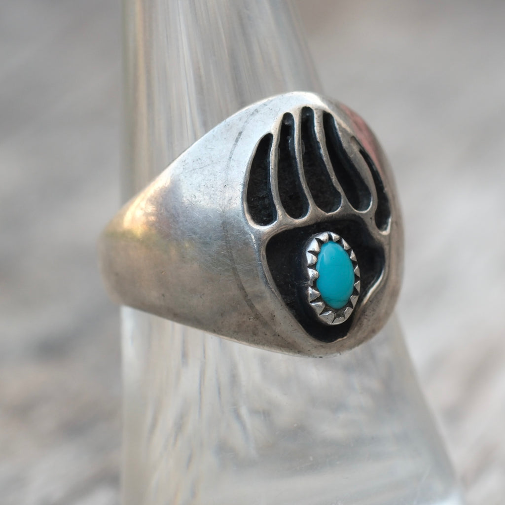 Vintage Sterling Turquoise Bear Paw Ring 7.25