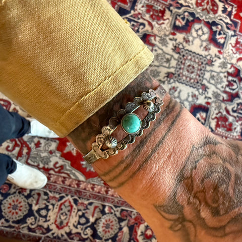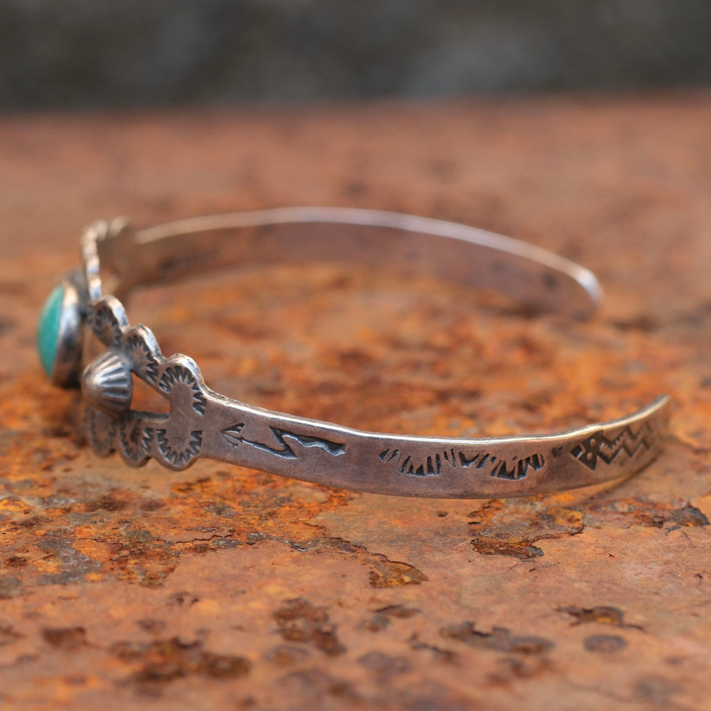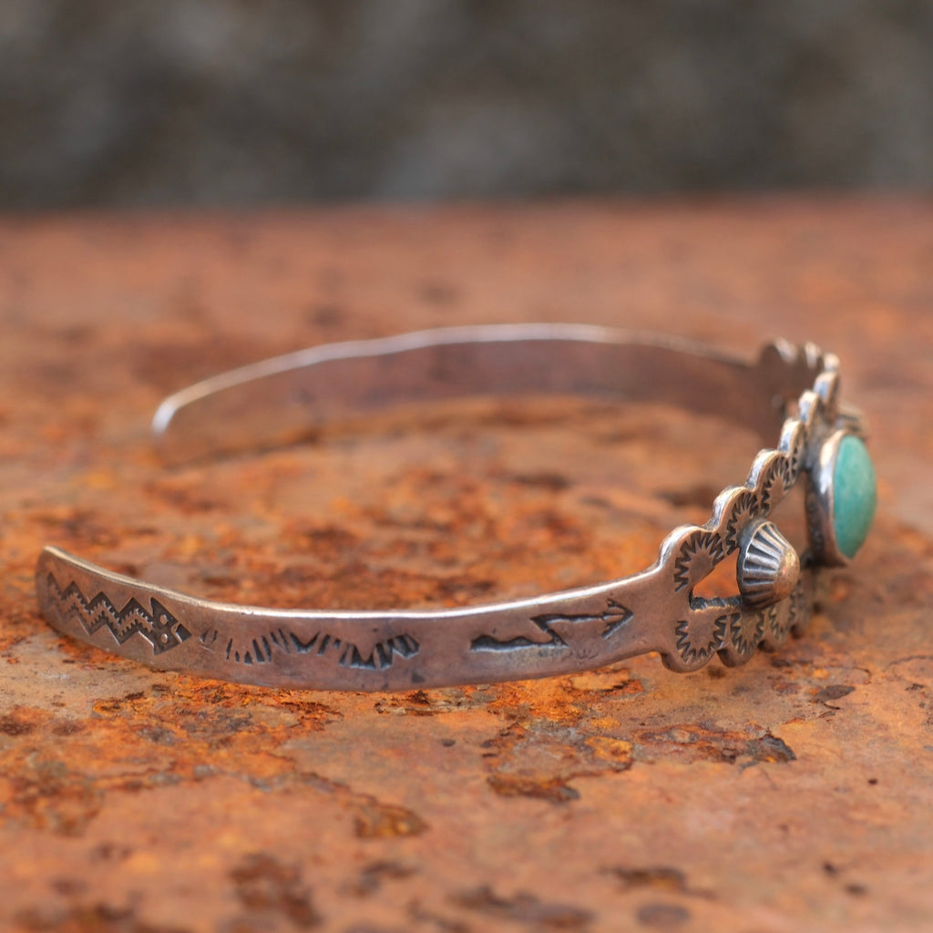 Vintage Sterling Turquoise Stamped Cuff Bracelet