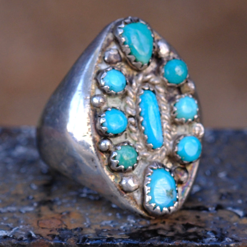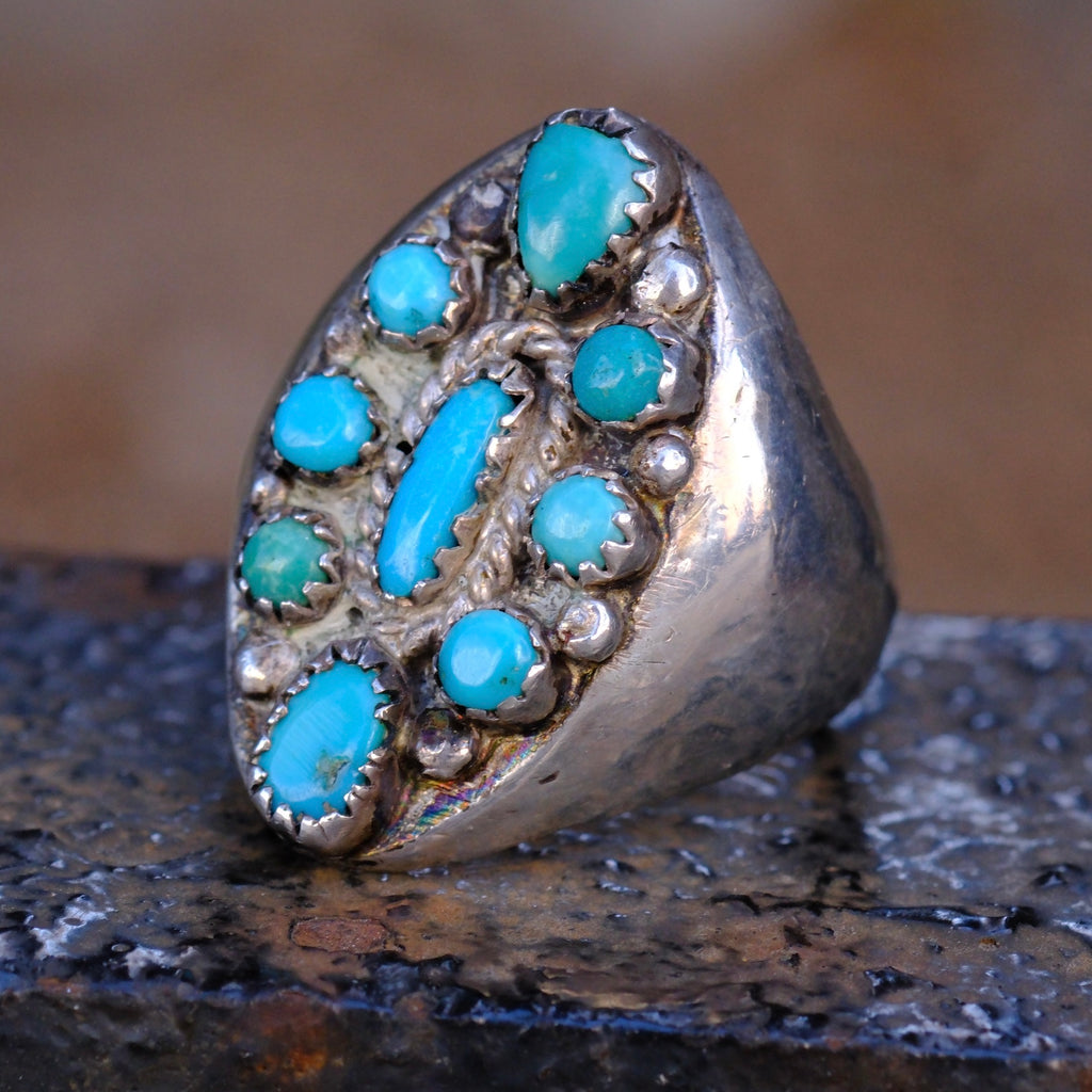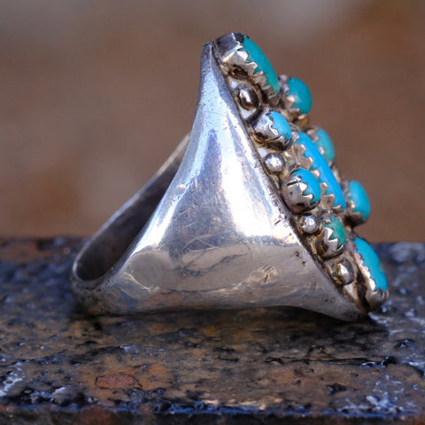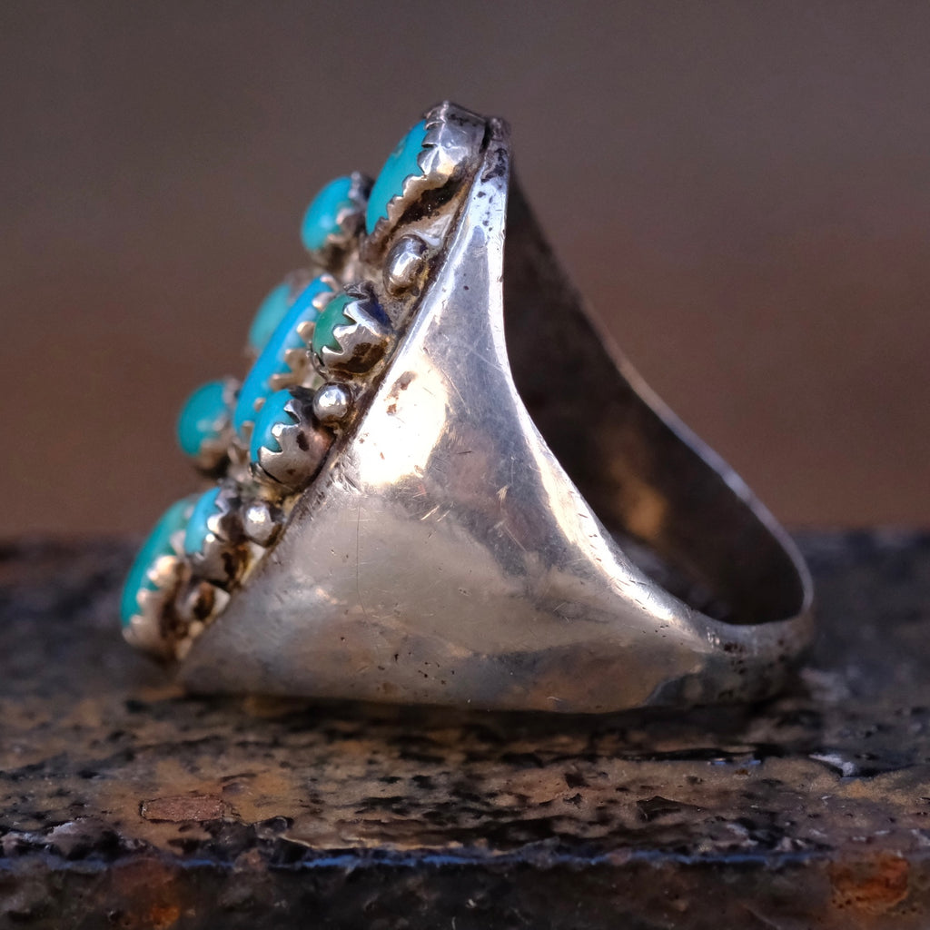 Vintage Sterling 9-Stone Turquoise Cluster Ring