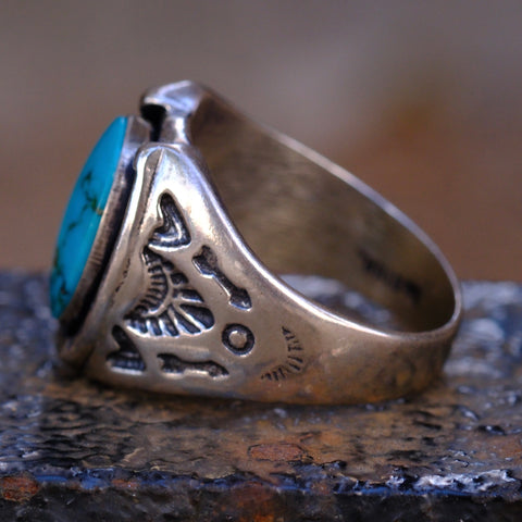 Vintage Sterling Turquoise Lucky Horseshoe Ring 9.5