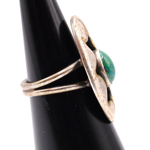 Vintage Sterling Turquoise Shadowbox Ring 4.75