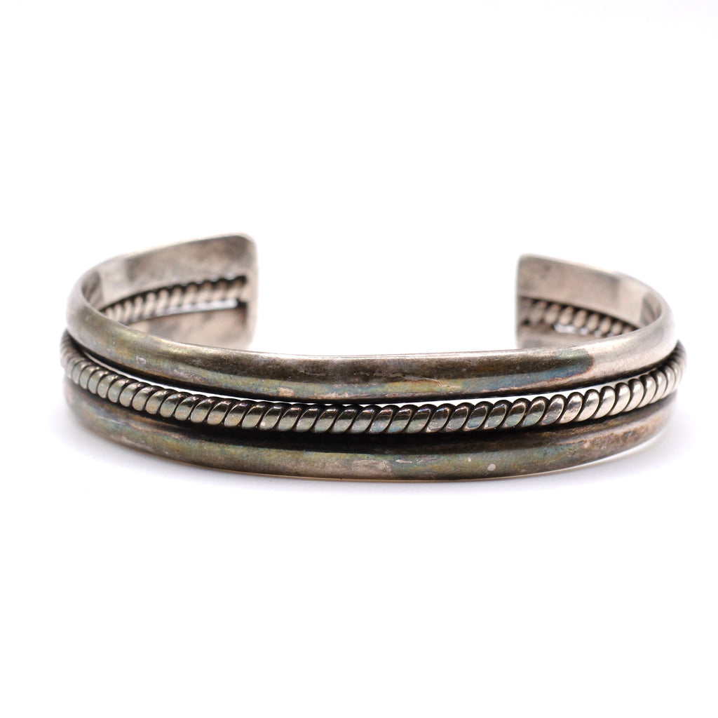 Vintage Sterling Silver Braided Cuff Bracelet 6.5"