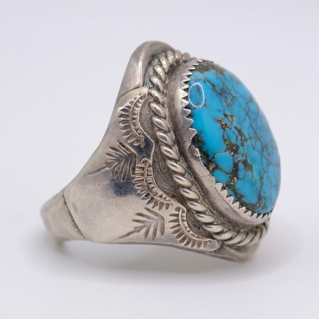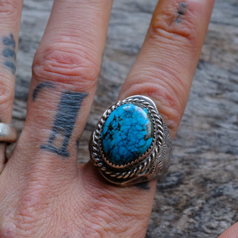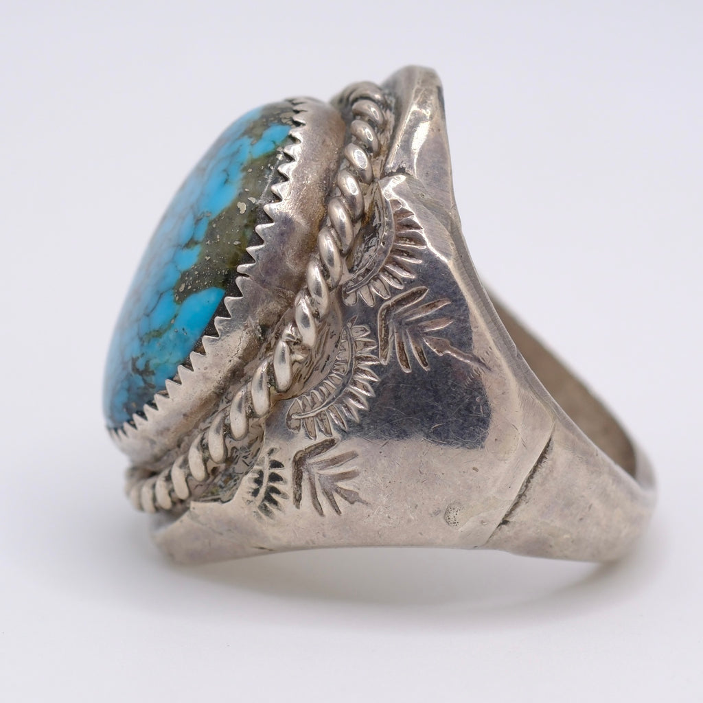 Vintage Sterling Turquoise Stamped Band Ring 10.5