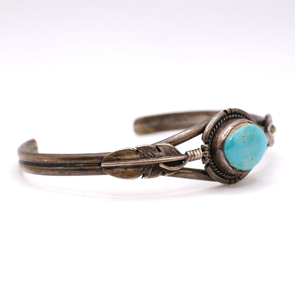 Vintage Sterling Turquoise Feather Cuff Bracelet