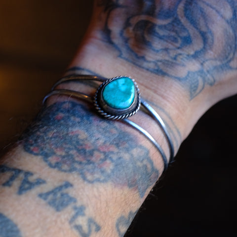 Vintage Sterling Turquoise Roper Cuff Bracelet