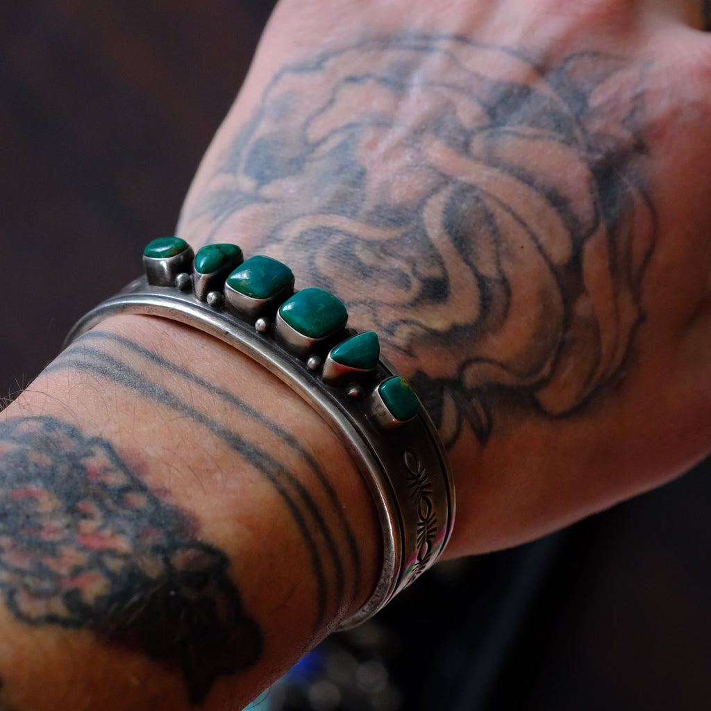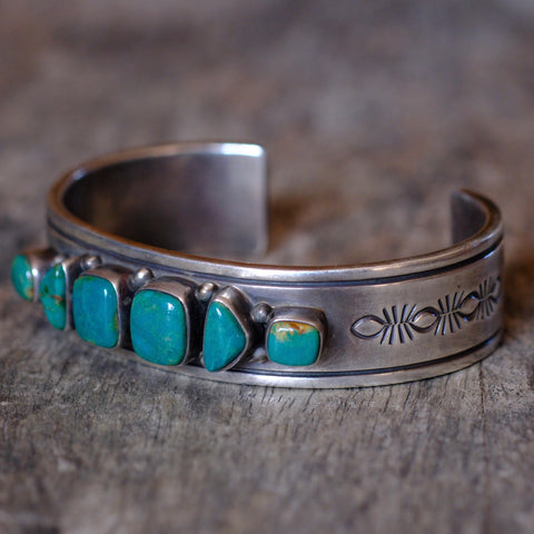 R. Bennet Sterling Stamped 6-Stone Turquoise Cuff Bracelet