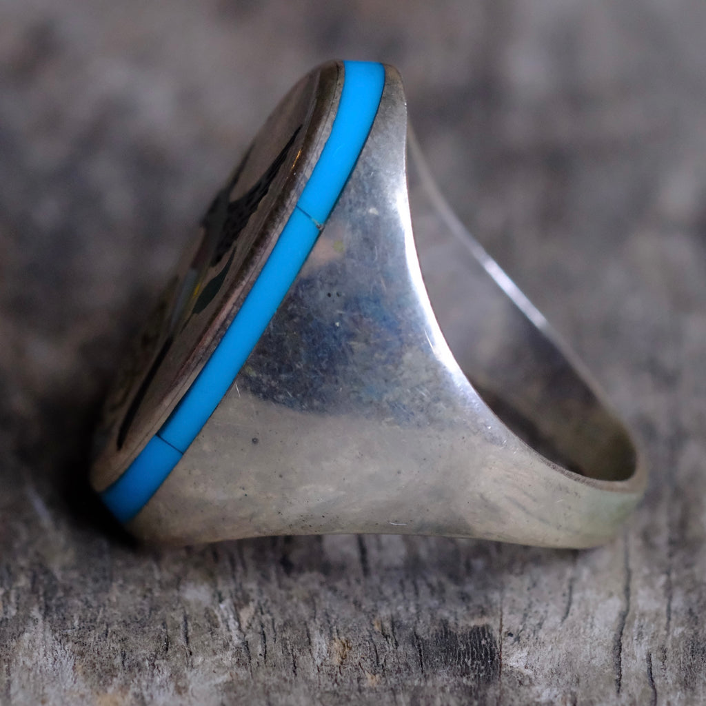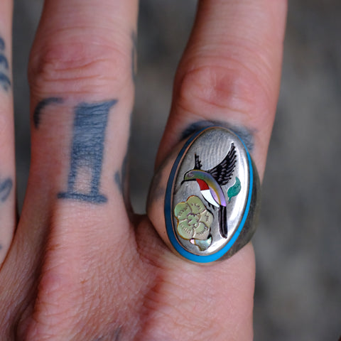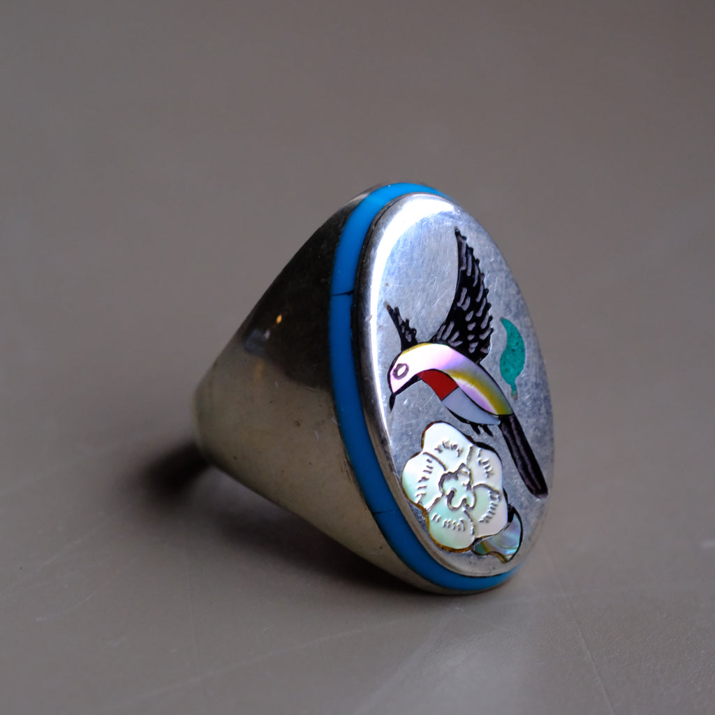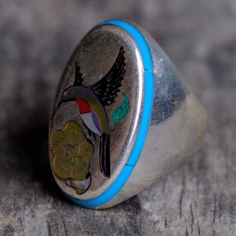 Vintage Sterling Inlaid Hummingbird Ring 10.75