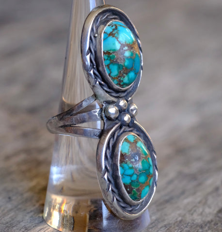 Huge Vintage Sterling 2-Stone Turquoise Ring 7