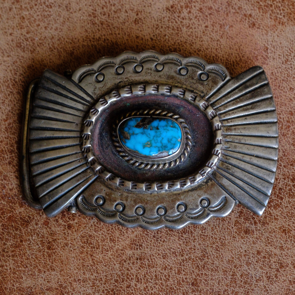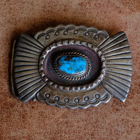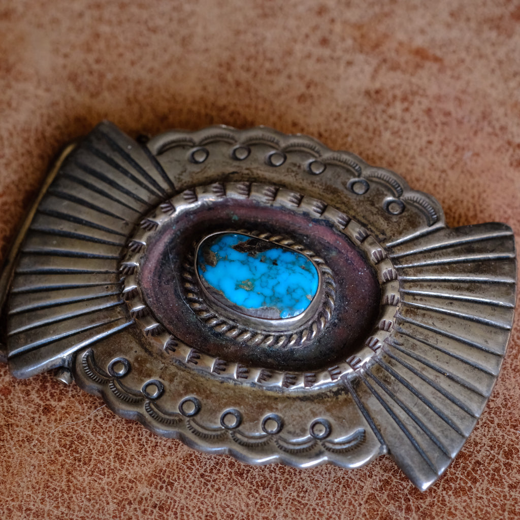 Vintage Sterling Heavy Turquoise Belt Buckle