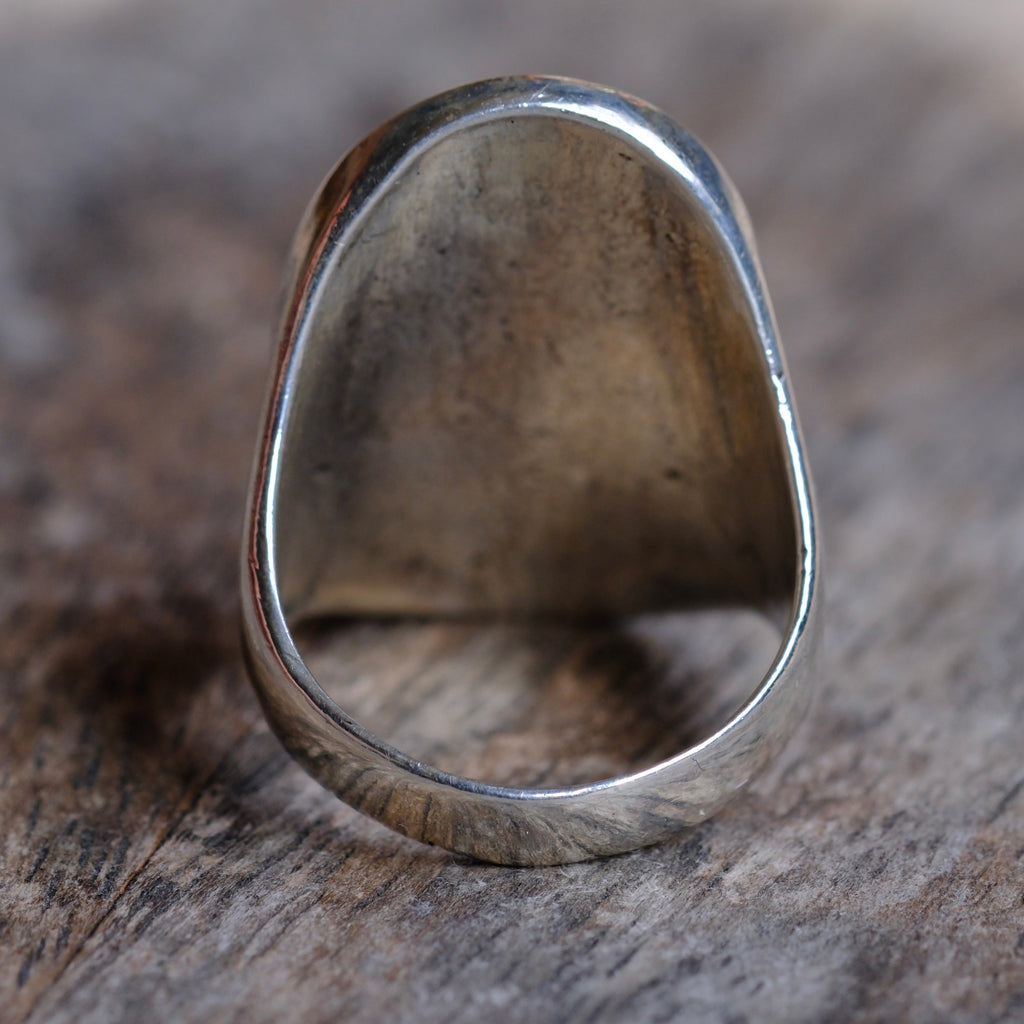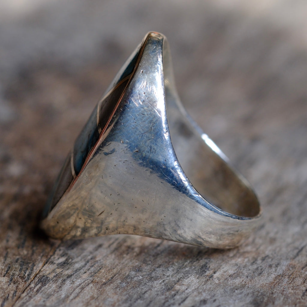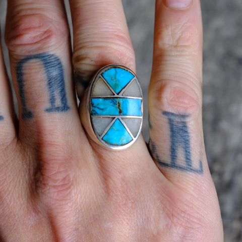 Vintage Sterling Turquoise and Mother of Pearl Inlay Ring 8.25