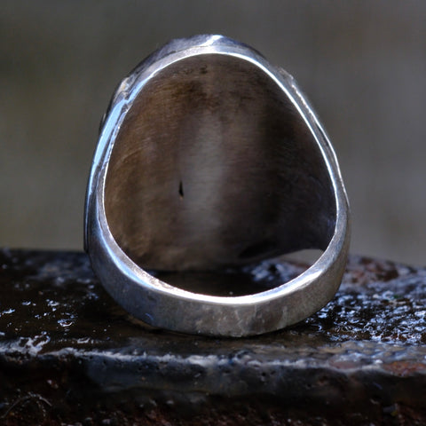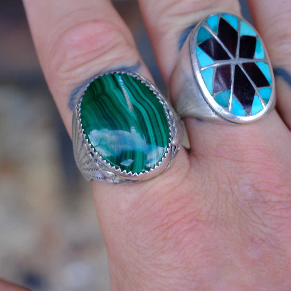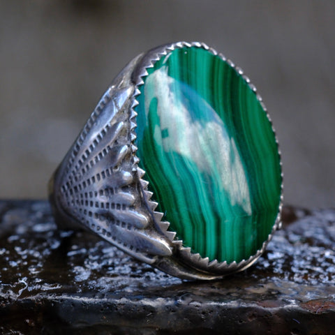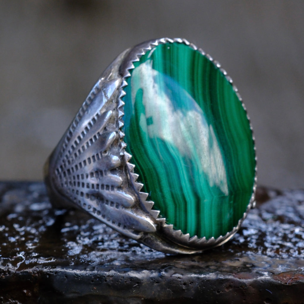 Vintage Sterling Malachite Ribbed Band Ring 11