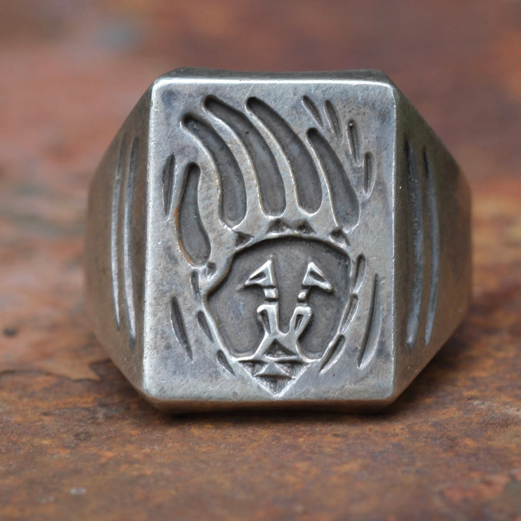 Vintage Sterling Silver Hopi Bear Paw Ring 10.75