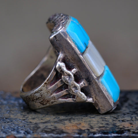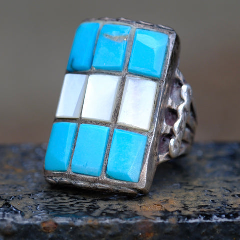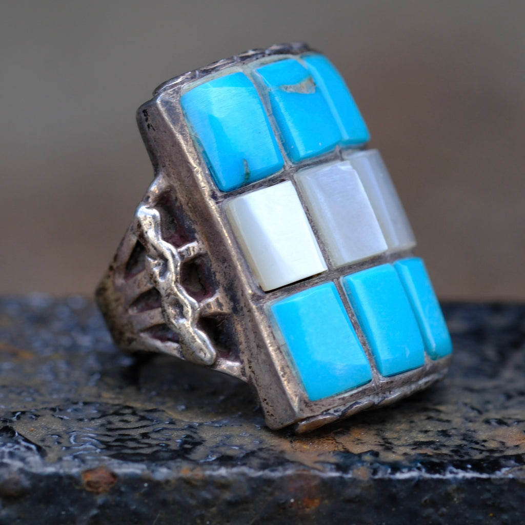 Vintage Sterling Turquoise and Mother Of Pearl Inlay Ring
