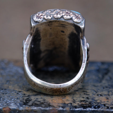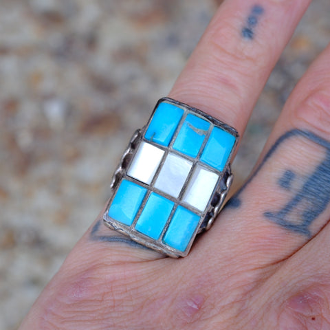 Vintage Sterling Turquoise and Mother Of Pearl Inlay Ring 5.5