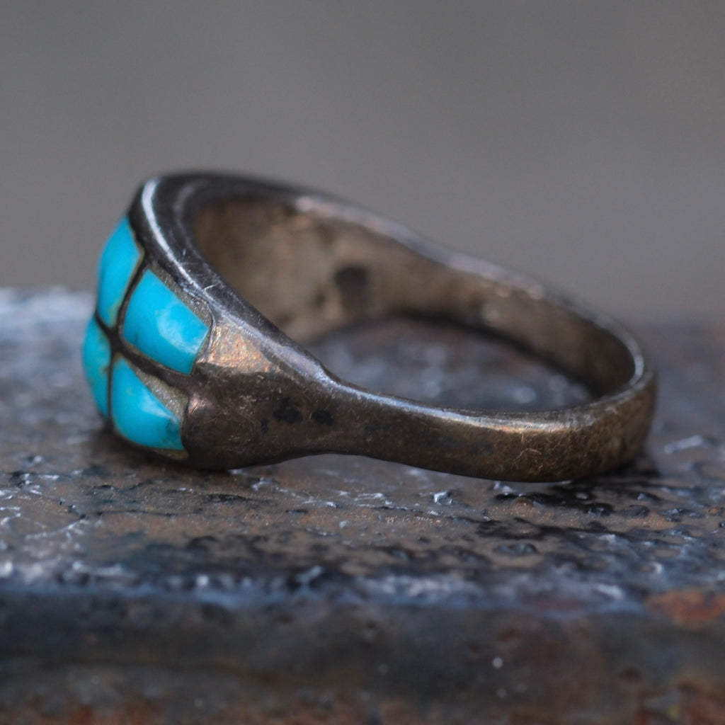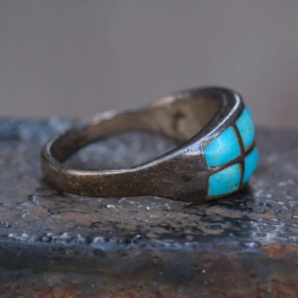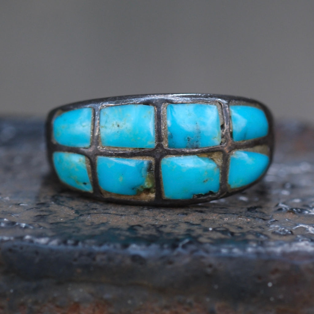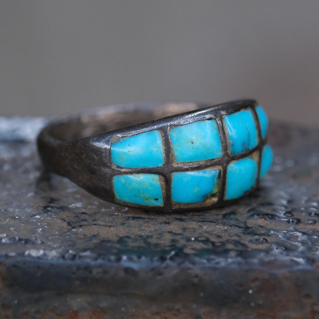 Vintage Sterling Turquoise Inlay Band 7