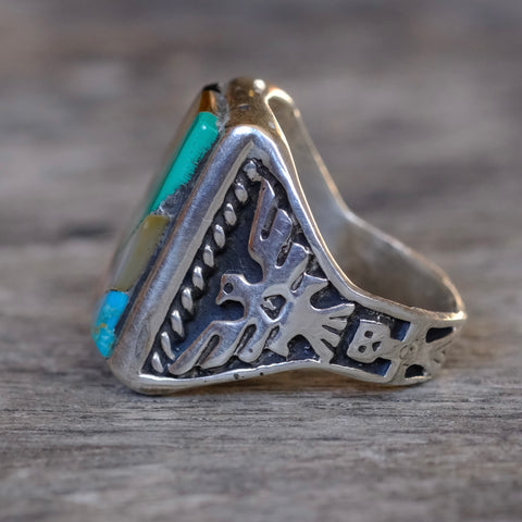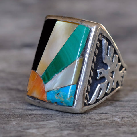 Vintage Sterling Multi Stone Sunrise Inlay Thunderbird Ring