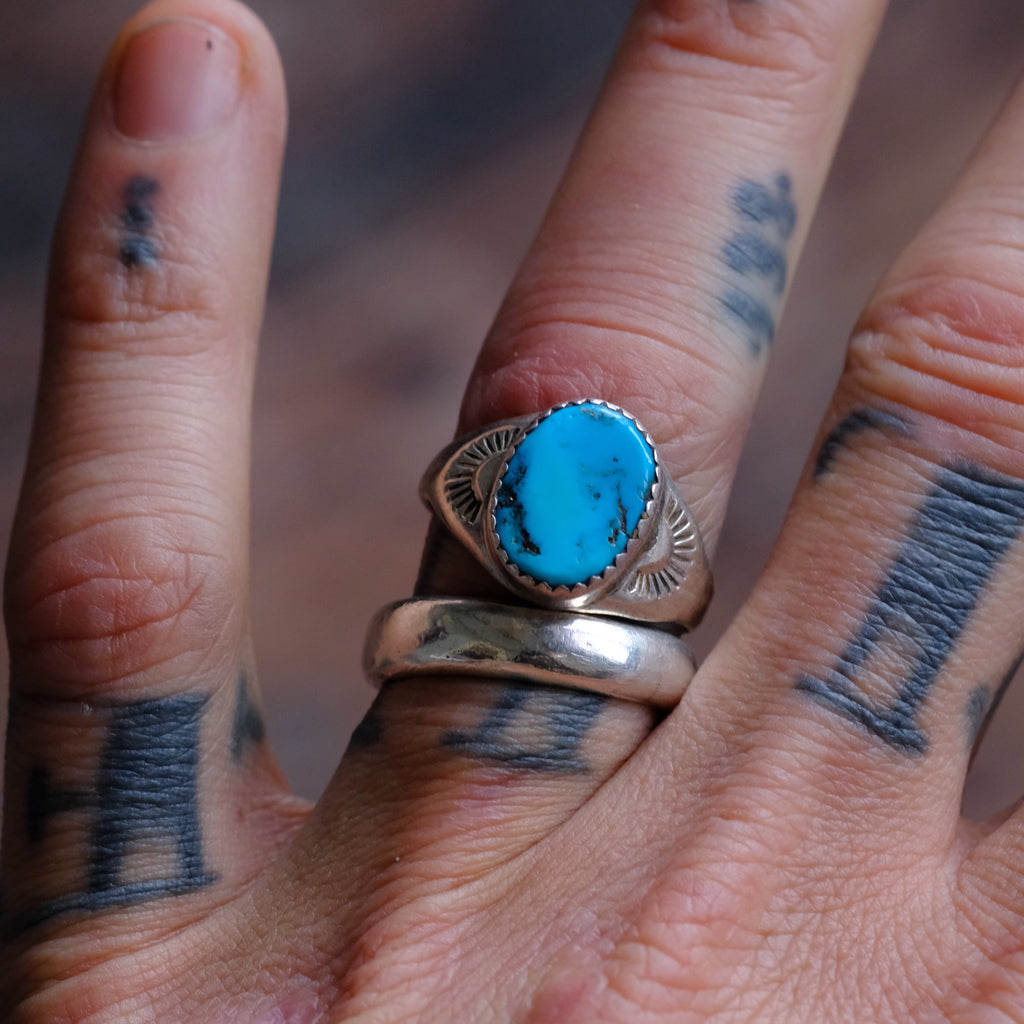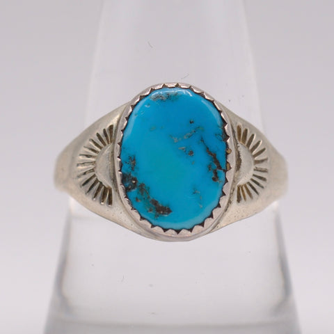 Vintage Sterling Turquoise Stamped Band Ring 9.25