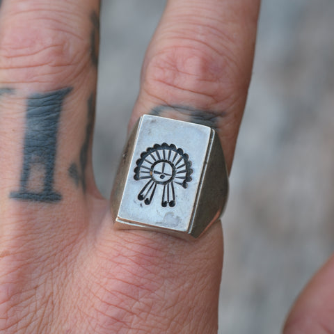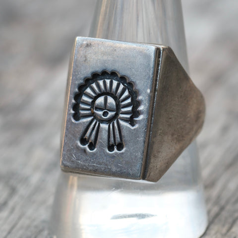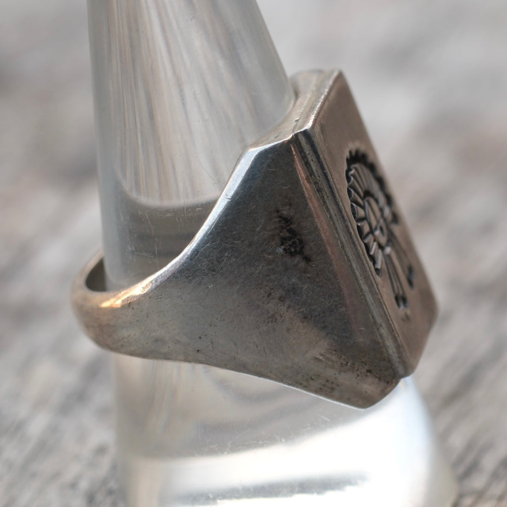 Vintage Sterling Zuni Head Dress Signet Ring 10