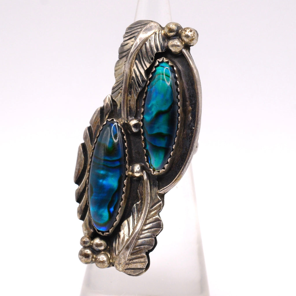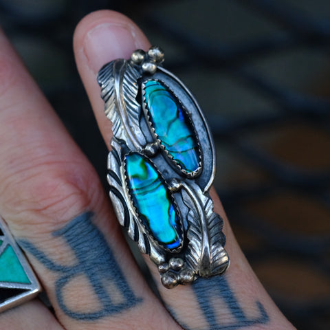 Vintage Sterling Abalone Feather Ring