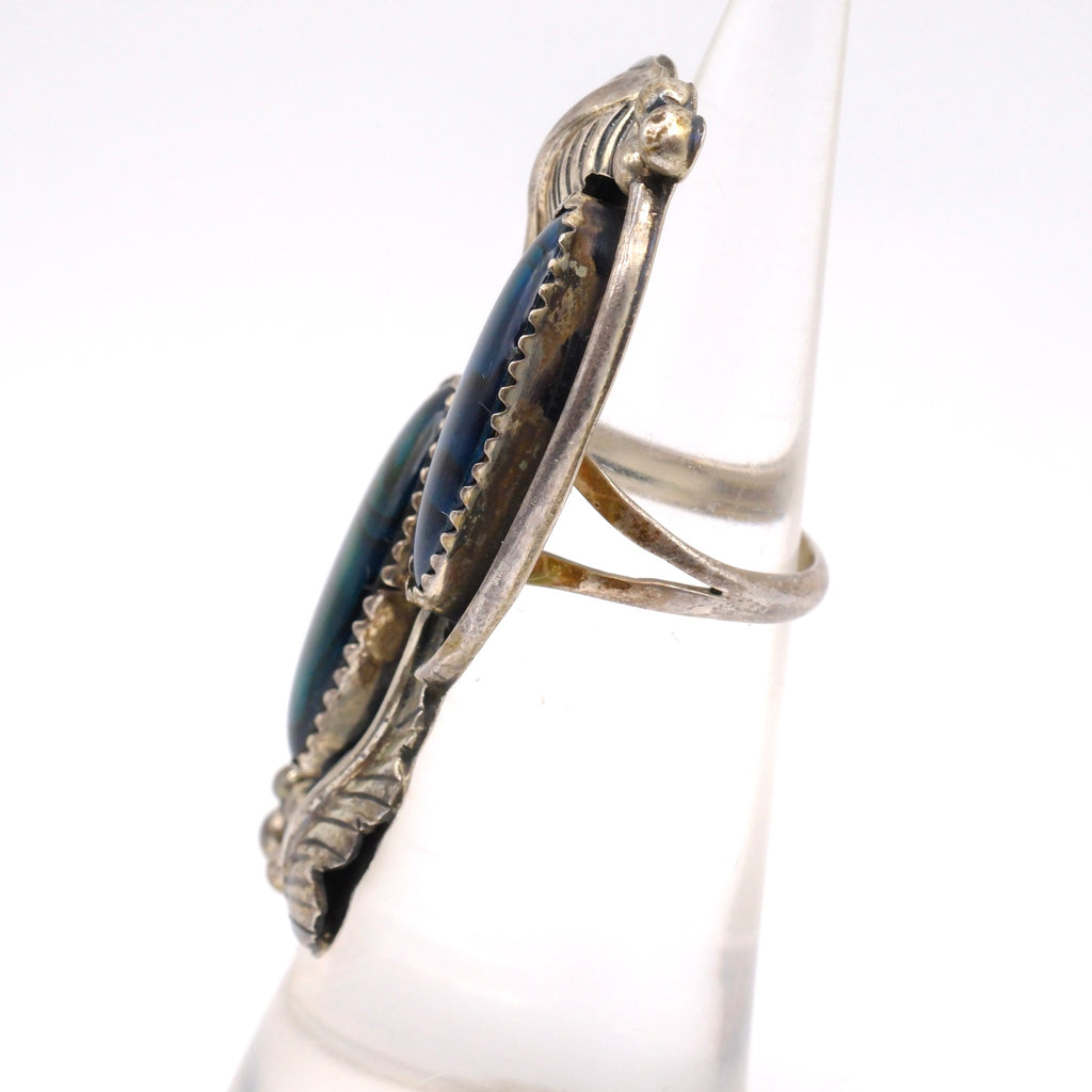 Vintage Sterling Abalone Feather Ring 3.75