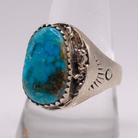 Vintage Sterling Turquoise Stamped Band Ring 11.5
